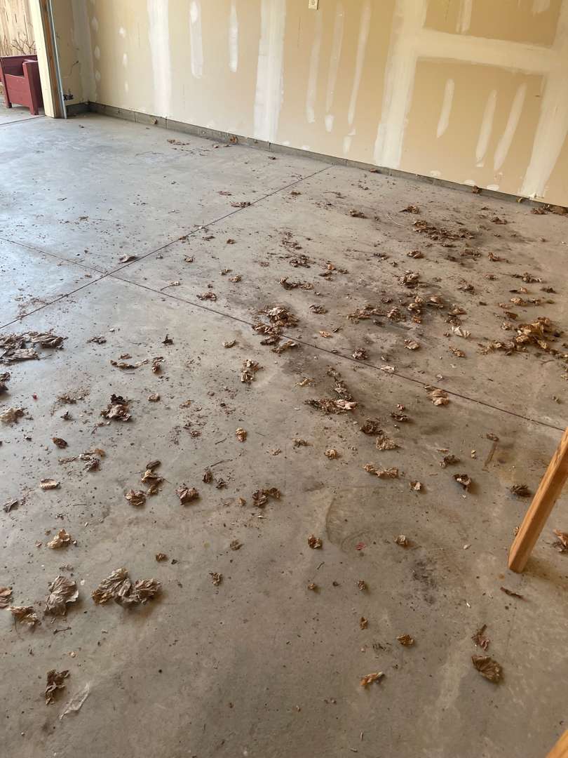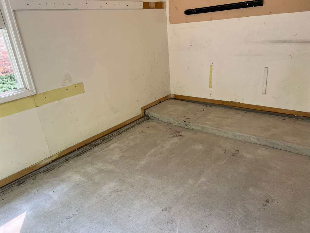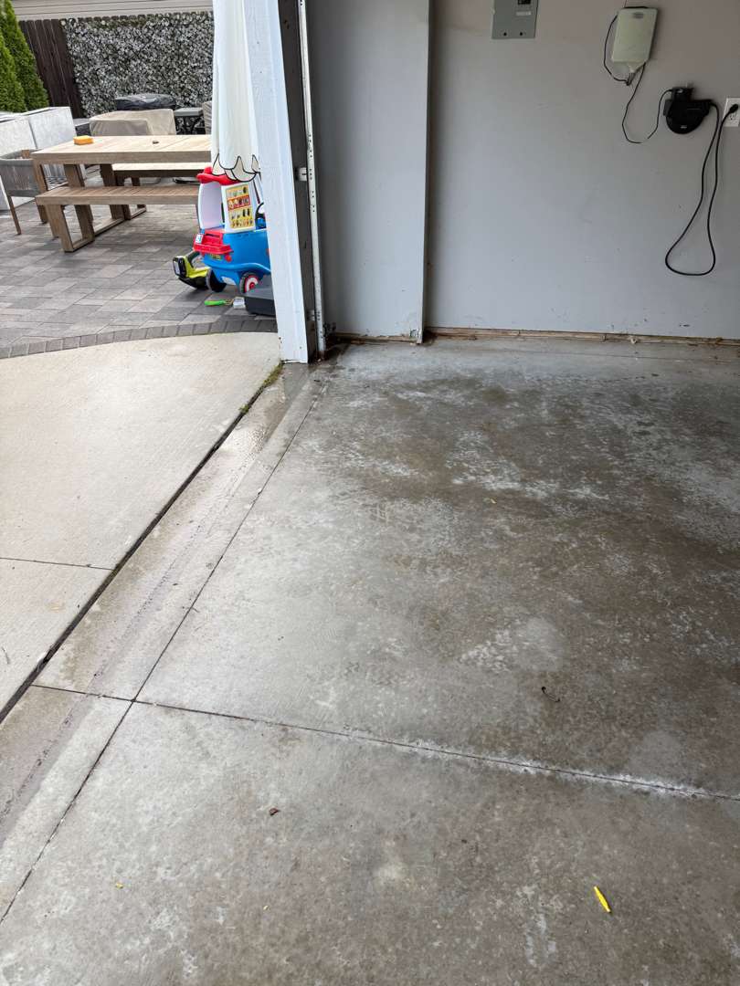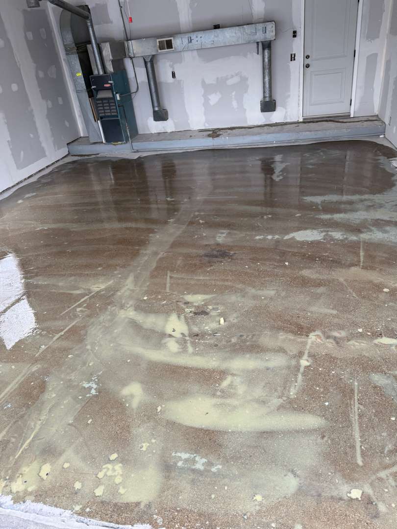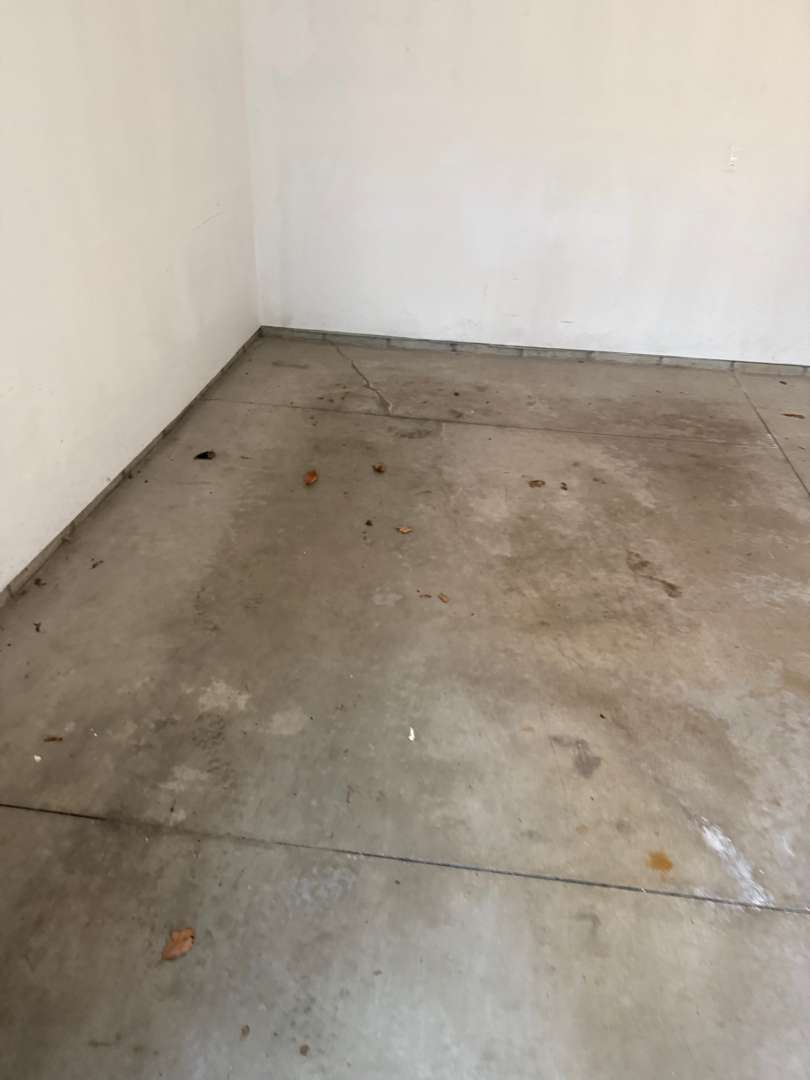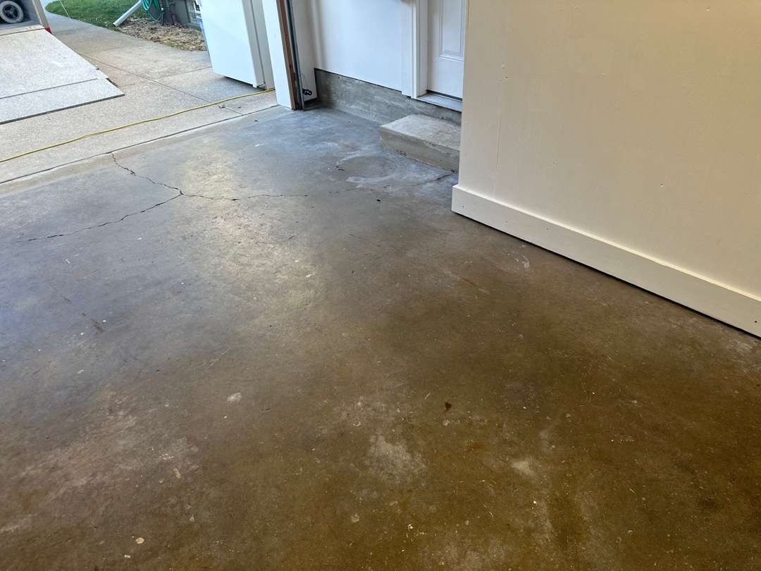 Our crew arrived at this Wakefield Street property during an active renovation. The garage walls were still in the drywall mud and tape stage. The concrete floor showed the evidence of construction work throughout. Drywall mud had dripped and dried across the slab. Paint scuffs and debris covered the surface. Oil spots marked the center of the floor.