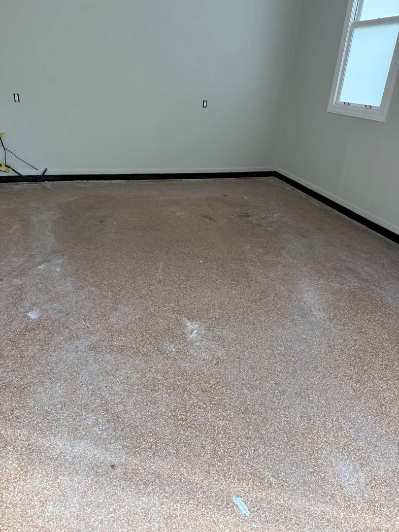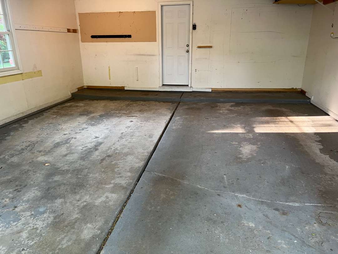 Our crew arrived at this Shipman Boulevard property to find a 740-square-foot garage. The slab was relatively new concrete. The surface showed minimal wear. No cracking, no deep staining, no structural damage. What it did have was a prior painted or flaked coating covering the slab. That existing coating had to come off before anything new could go down.