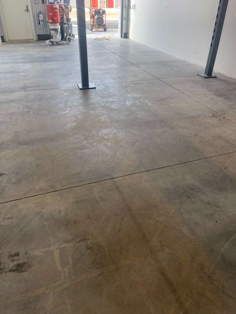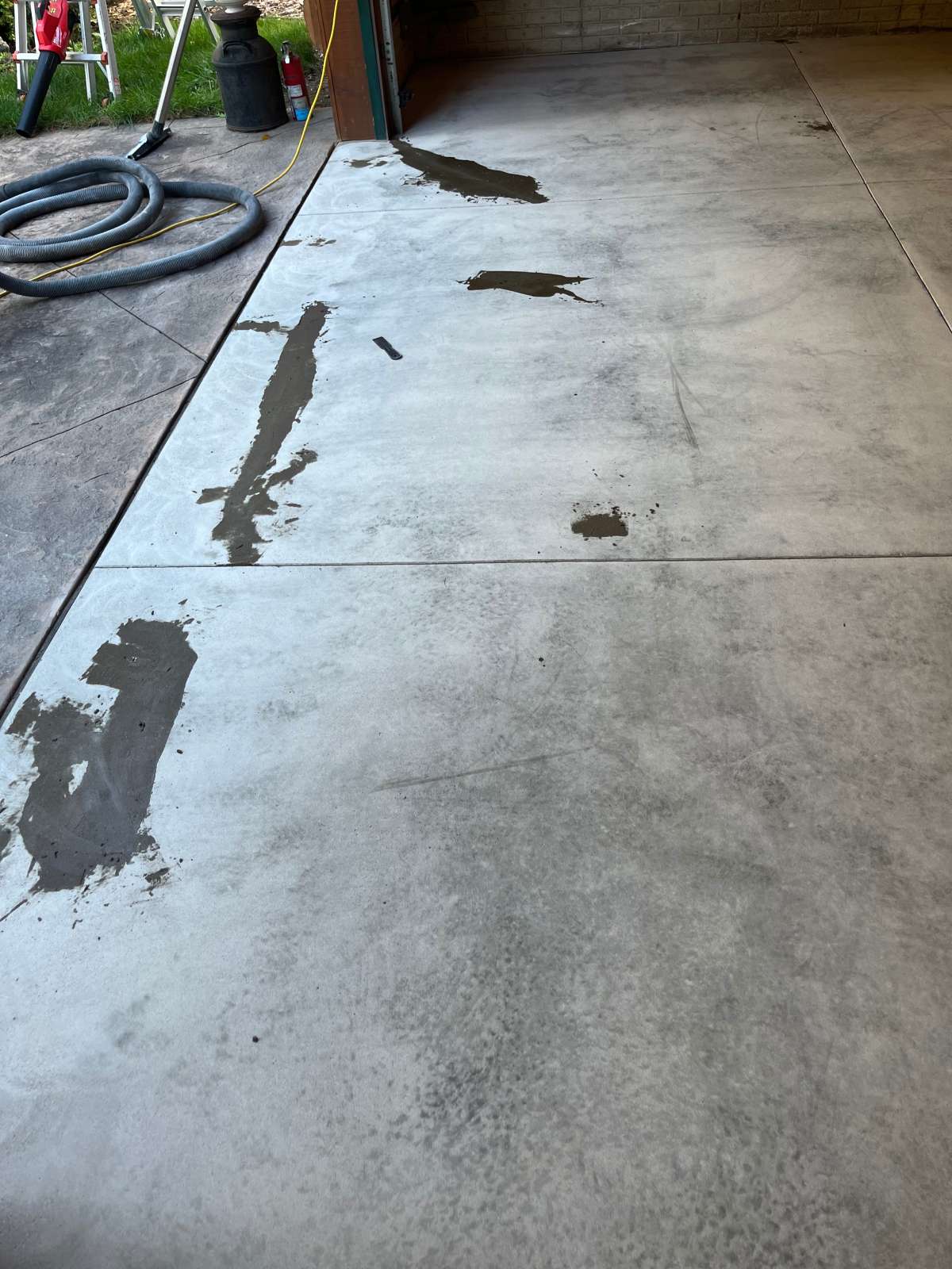 Our crew ground the full 413 square feet with diamond grinding equipment. The grinding removed the deteriorated surface layer and opened the concrete throughout. Our team worked across all zones — including the heavily pitted and spalled areas — until the slab was clean and ready for repair. Our crew vacuumed thoroughly before moving to the repair phase.