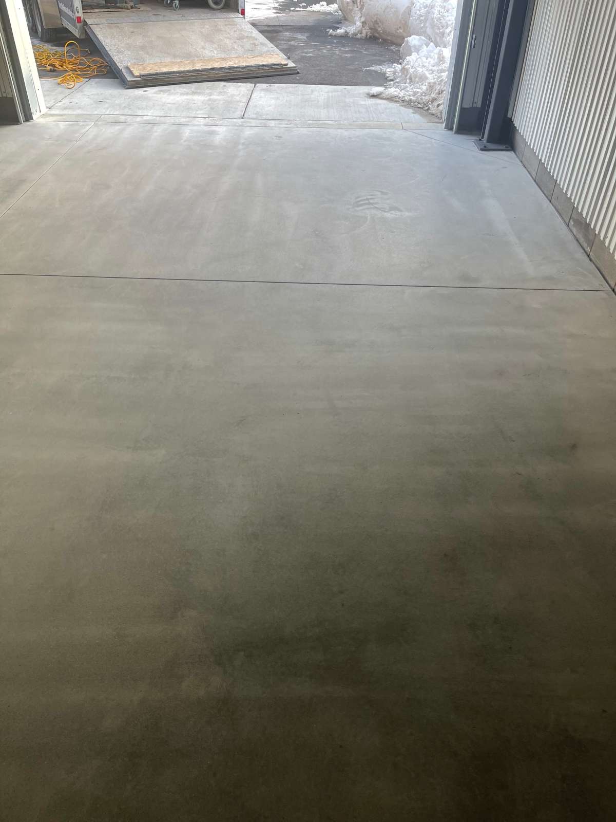 Each project includes thorough diamond grinding preparation, flexible polyurea crack repair, and careful application to ensure consistent coverage across the full slab. When heavy pitting or spalling is present — as our crew found at the James K Boulevard property in Pontiac — we apply full-zone mender compound before any coating goes down. This step restores a stable, consistent surface and ensures the polyurea-polyaspartic system bonds correctly across every square foot.