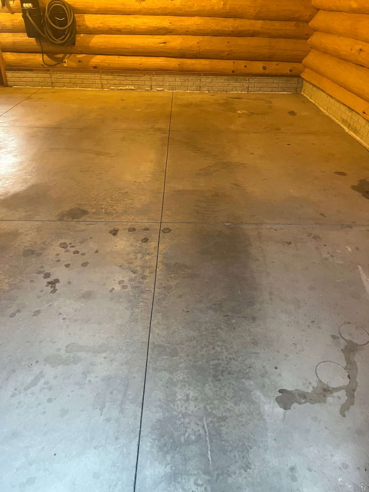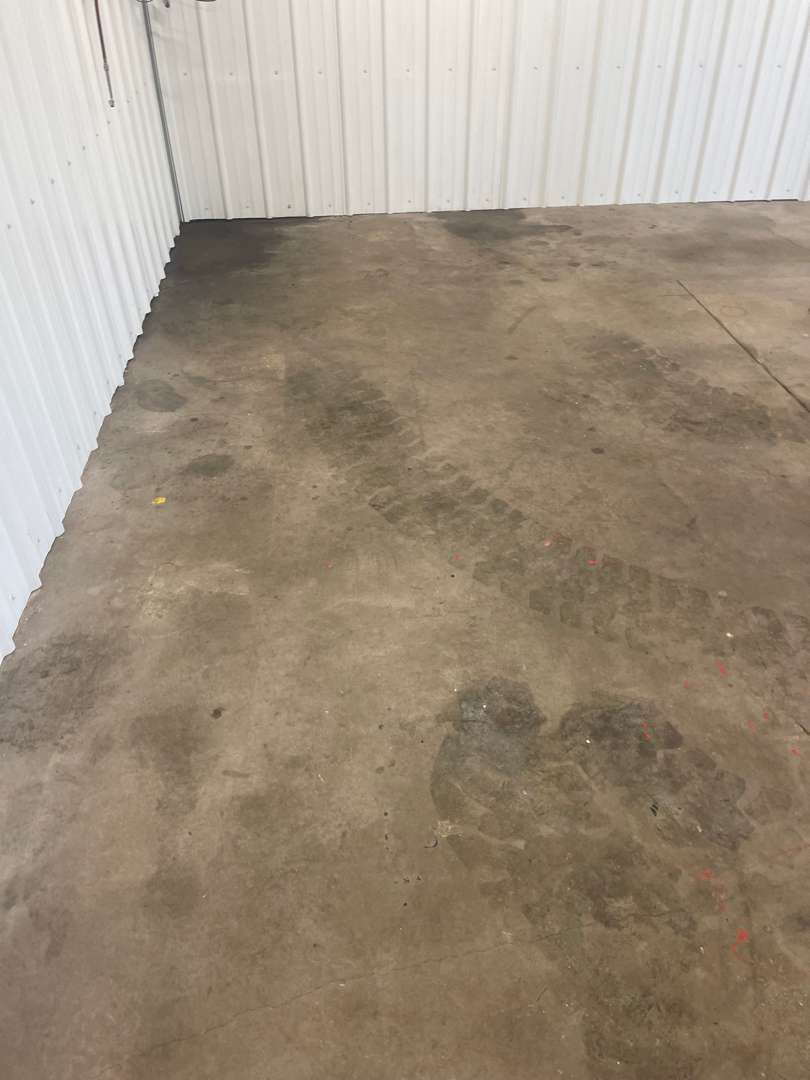 Our crew arrived at this property to find a 943-square-foot garage floor showing accumulated wear. Oil staining and general surface staining were spread across the slab. Minor pitting was present in spots. No cracks requiring major repair were noted. No steps and no vertical surfaces were included in the scope. The slab was structurally sound and needed surface preparation and spot repair before the coating system could go down.
