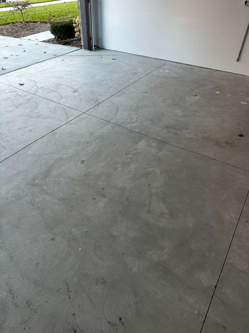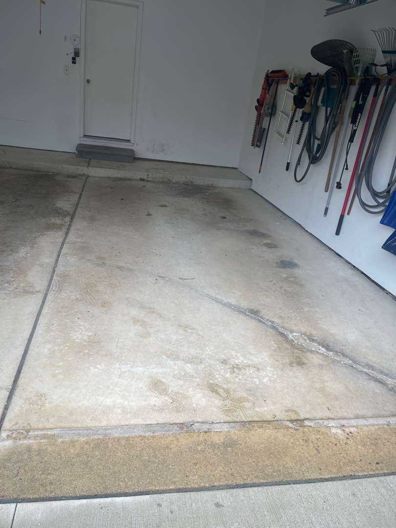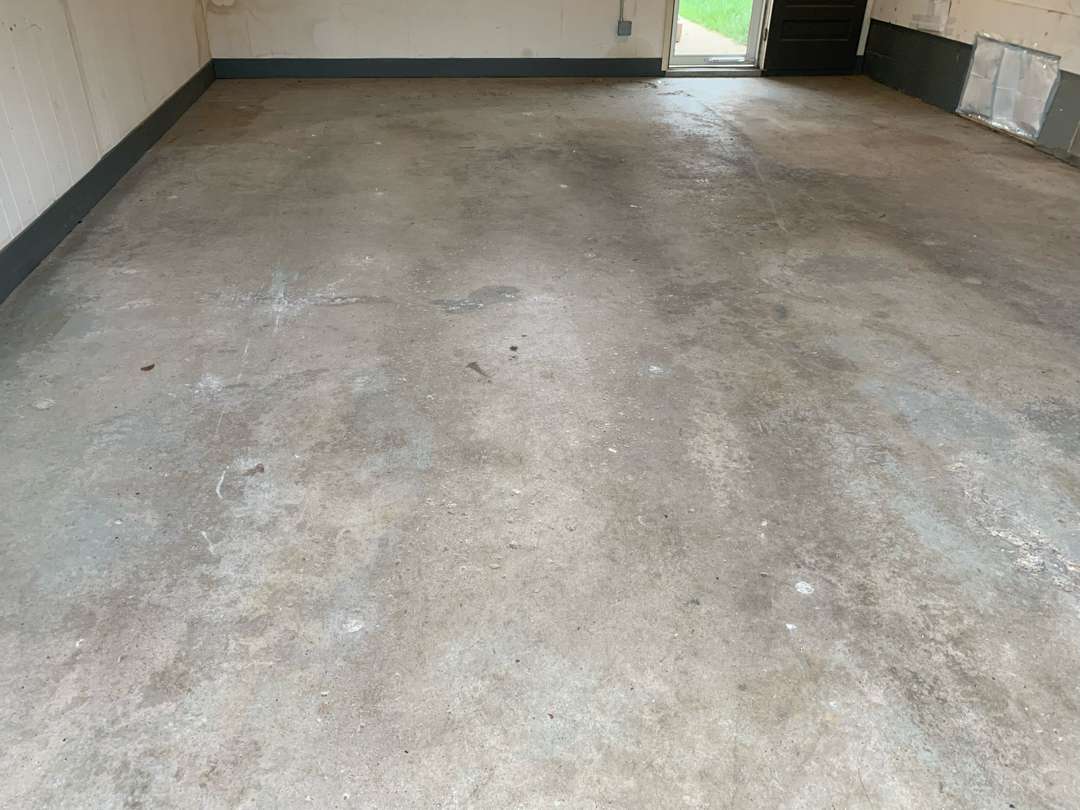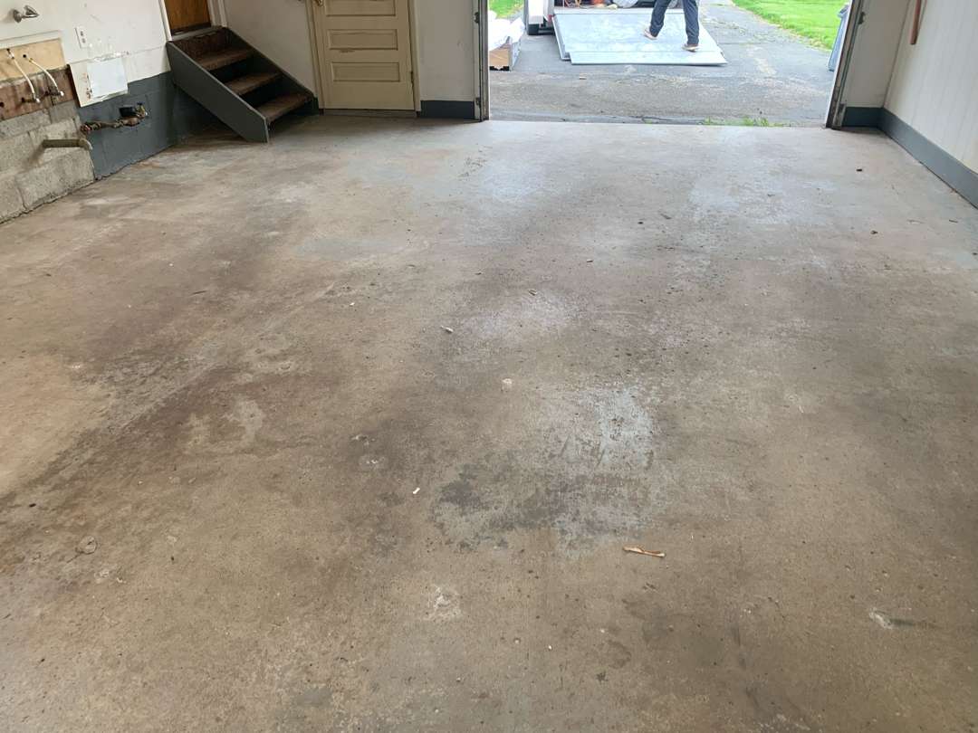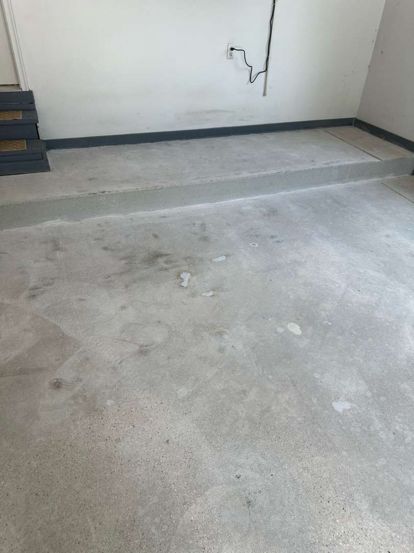 Winter road salt, freeze-thaw cycles, automotive fluids, and daily vehicle traffic degrade unprotected garage concrete over time. The damage typically appears as oil staining, cracking, surface pitting, and adhesion failure in previously coated floors.