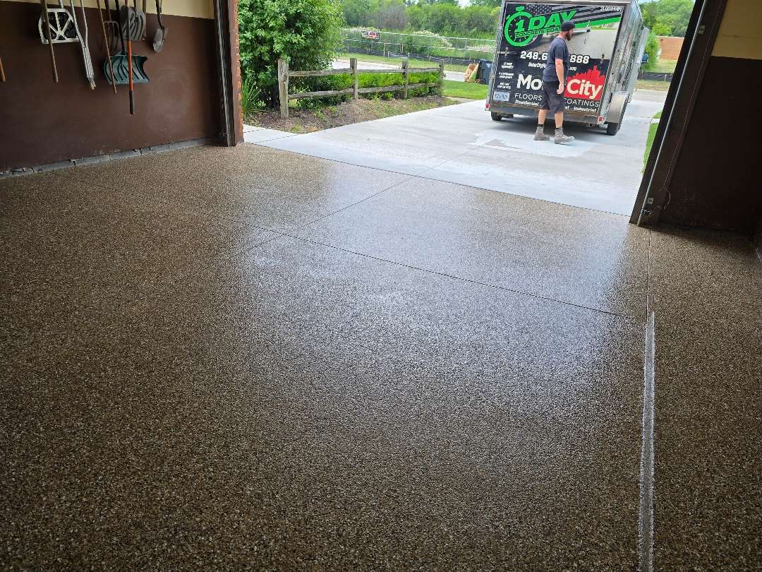 On this page, we document 8 garage floor coating projects in Troy, MI. Our dual-coating systems have converted worn concrete slabs into durable, attractive garage floors. Troy is an Oakland County city with a wide range of residential properties — from newer subdivisions with freshly poured concrete to established neighborhoods where homes and garages have accumulated decades of Michigan weather and daily use.