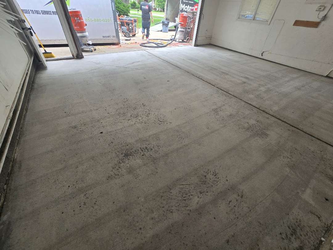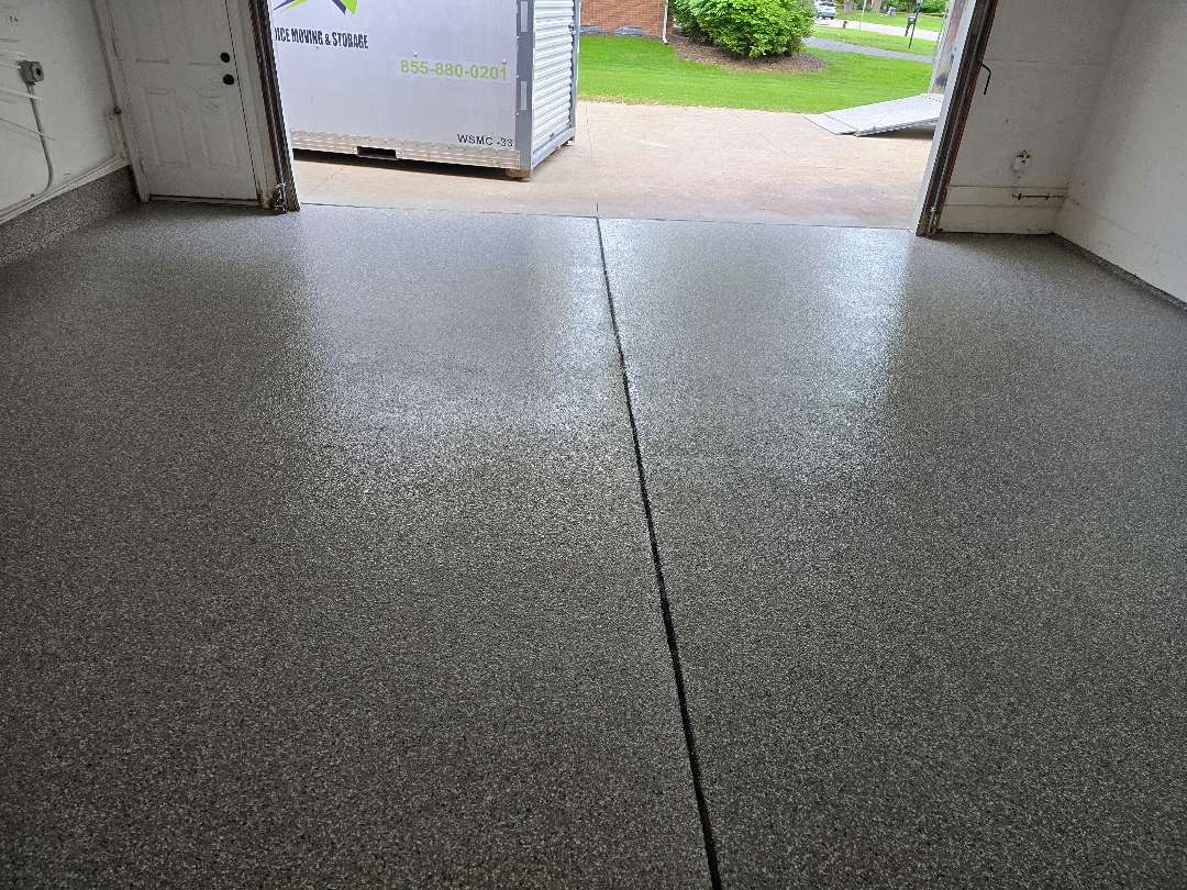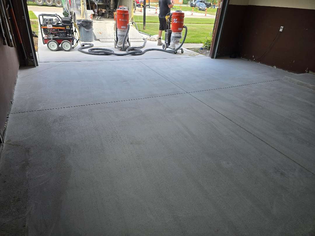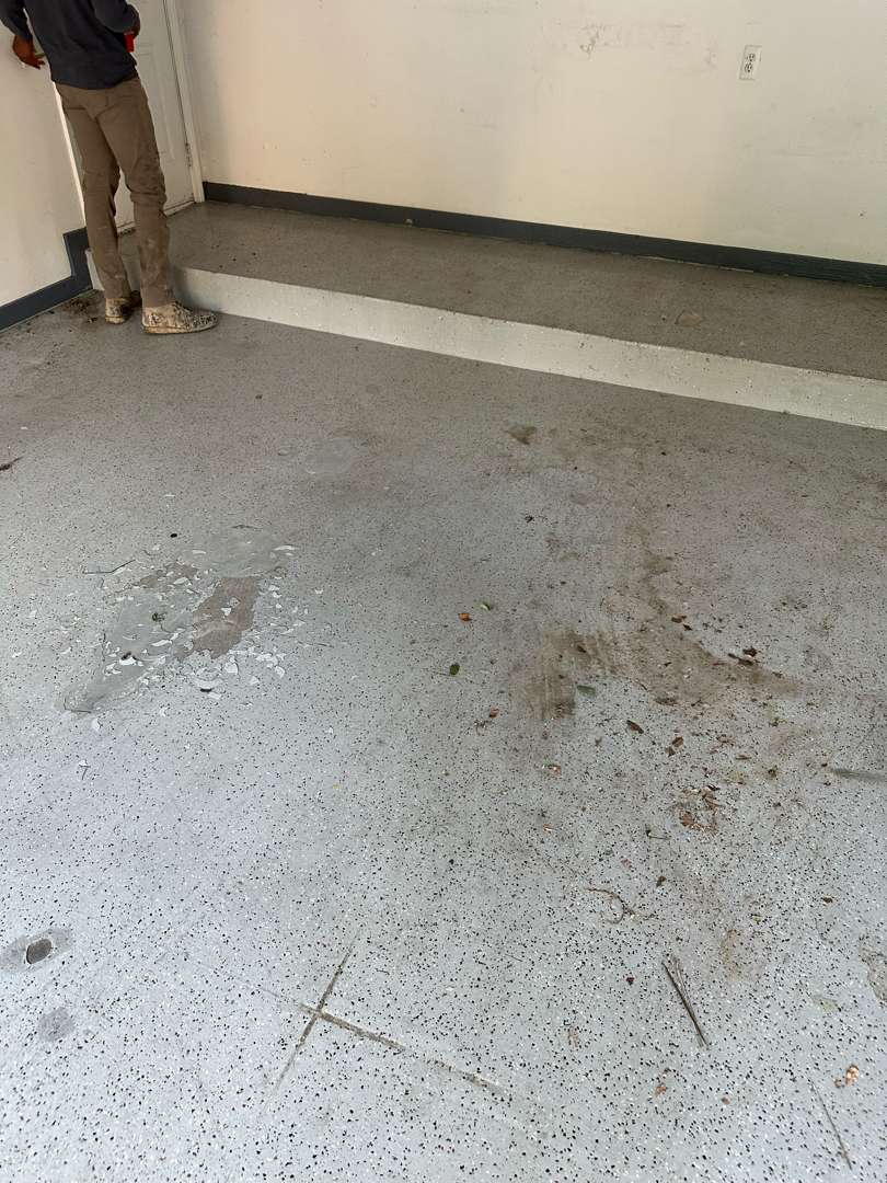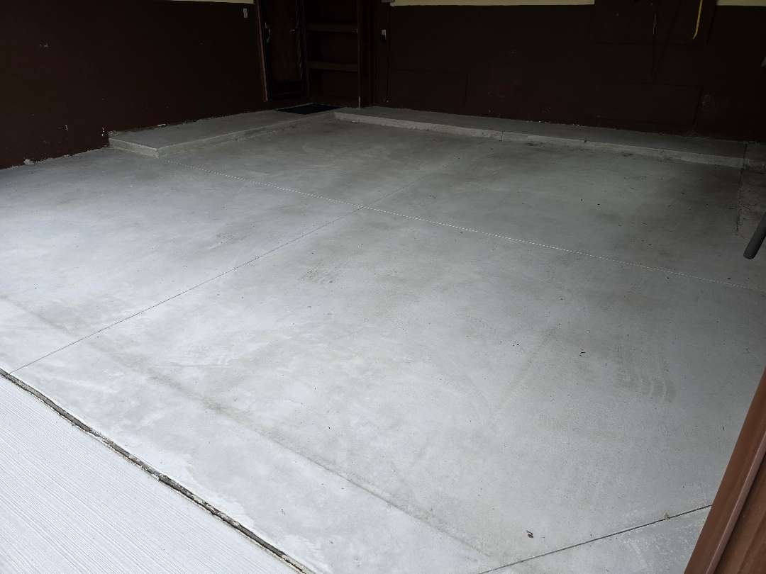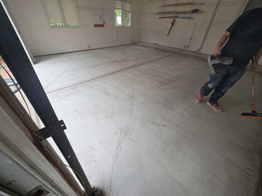 Each project includes thorough diamond grinding preparation, flexible polyurea crack repair, and careful application to ensure consistent coverage across the full slab. When prior coatings are present — as our crew found at properties on Lyster Lane and Vanderpool Avenue — we strip the existing system completely before any new material goes down. This step ensures the polyurea-polyaspartic system bonds directly to the concrete rather than to a compromised surface above it.