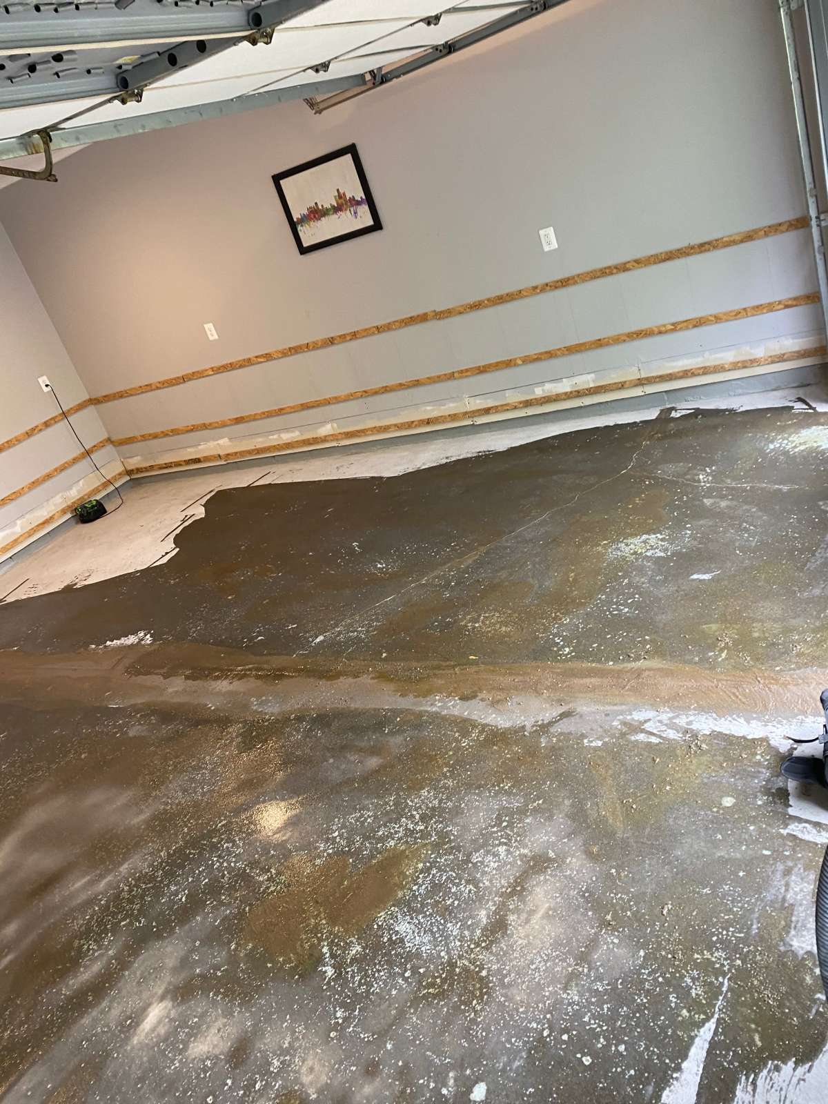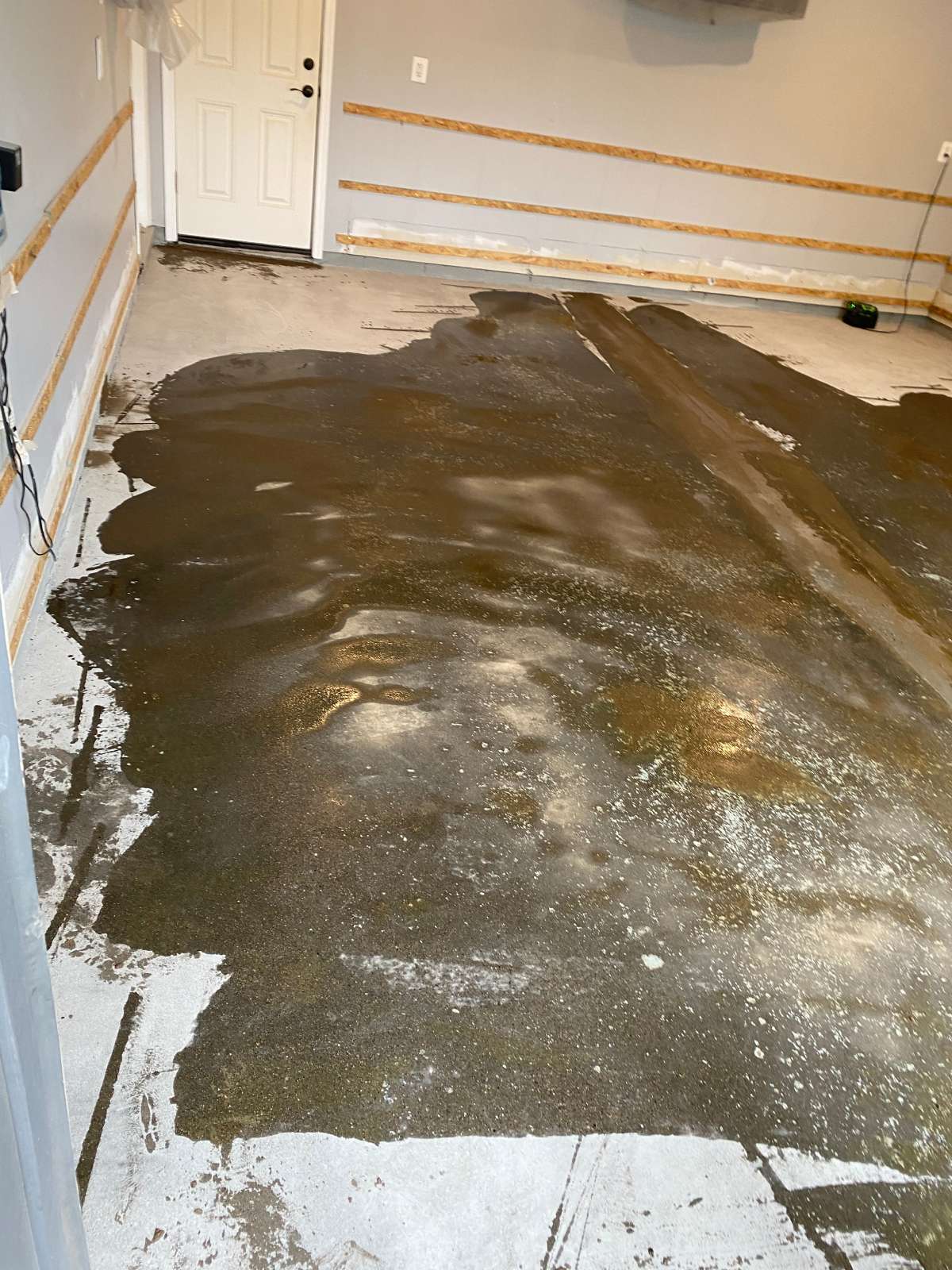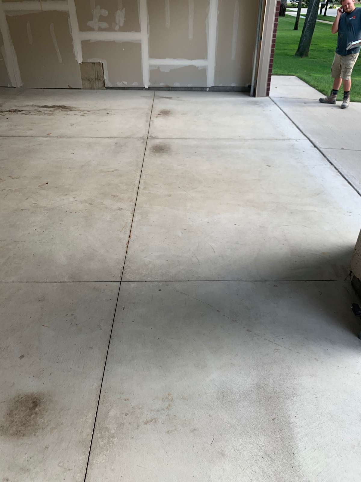 Winter road salt, freeze-thaw cycles, automotive fluids, and daily vehicle traffic degrade unprotected garage concrete over time. The damage typically appears as oil staining, cracking, surface pitting, and adhesion failure in previously coated floors.