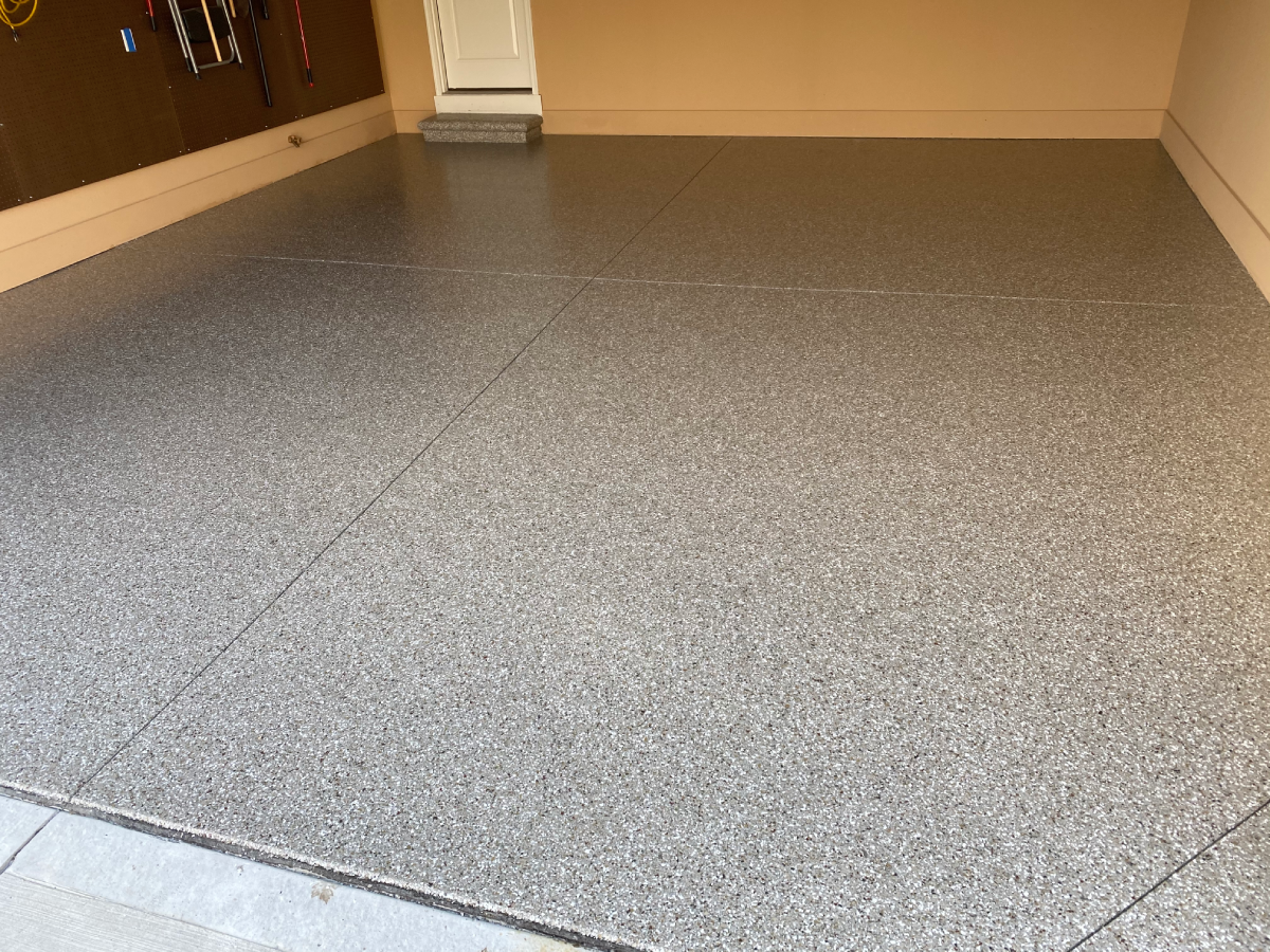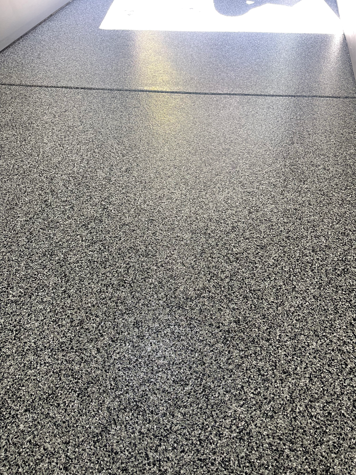 The homeowner wanted a coating system that would match the quality of their space—and the Pebble Beach flake finish delivered exactly that.