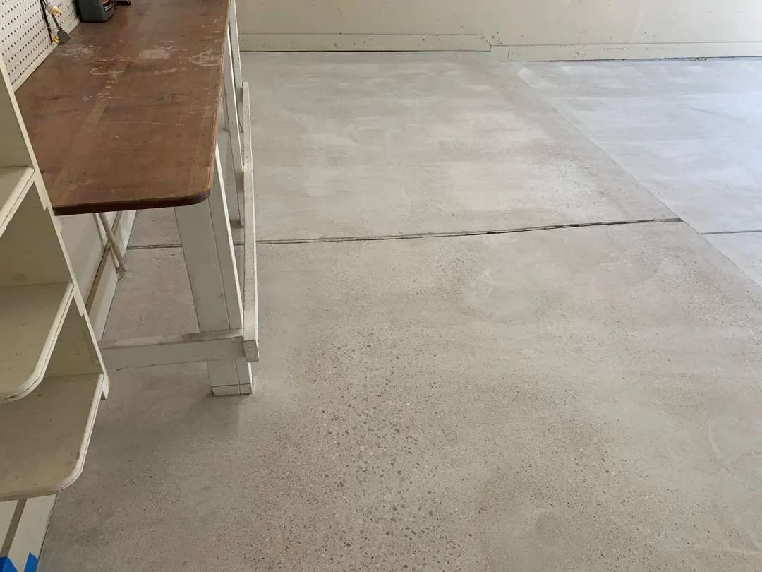 Our crew deployed their diamond grinding equipment across the entire 504 square feet, creating uniform surface profile across both old and new concrete sections. This step was critical for ensuring the polyurea/polyaspartic garage floor coating would perform consistently across the entire floor, with no visible distinction between the sections.