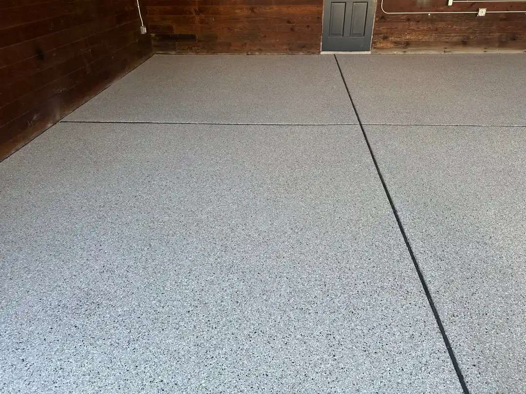 The dark charcoal Silver Creek blend creates strong visual impact while maintaining practical functionality. The variegated flake pattern naturally camouflages minor dirt and tire marks, reducing the frequency of cleaning required to maintain a presentable appearance. The smooth, sealed surface makes the garage significantly easier to maintain, with spills wiping clean and dust sweeping effortlessly across the non-porous coating.