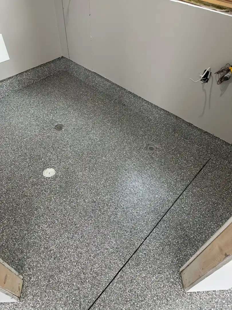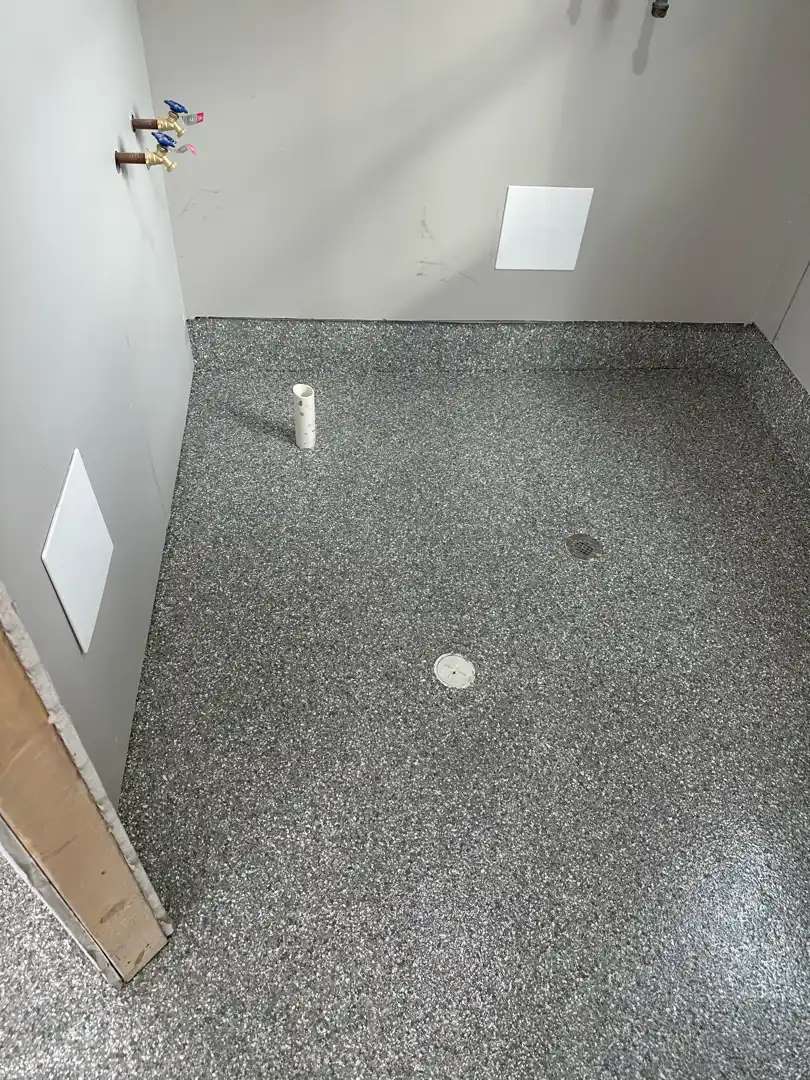 Our team incorporated Shark Grip texture additive at 2 caps per mix batch, totaling 5 caps across the entire application. This created a matte surface finish with enhanced traction properties when prevents the floor from becoming slippery when wet while keeping it easy to-clean.
