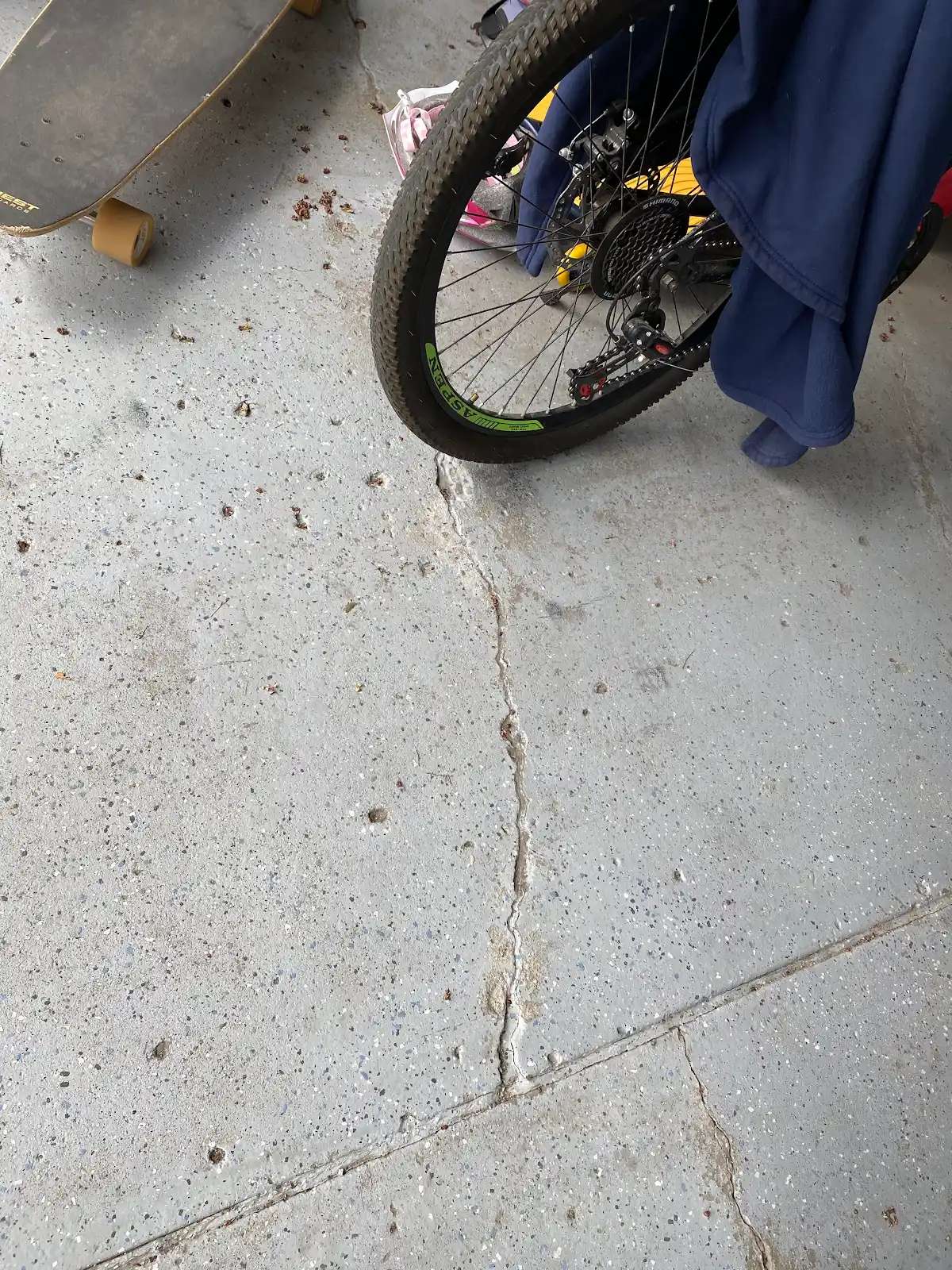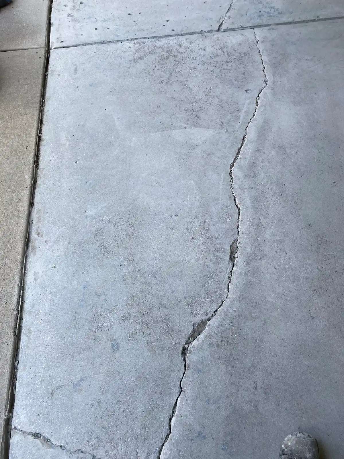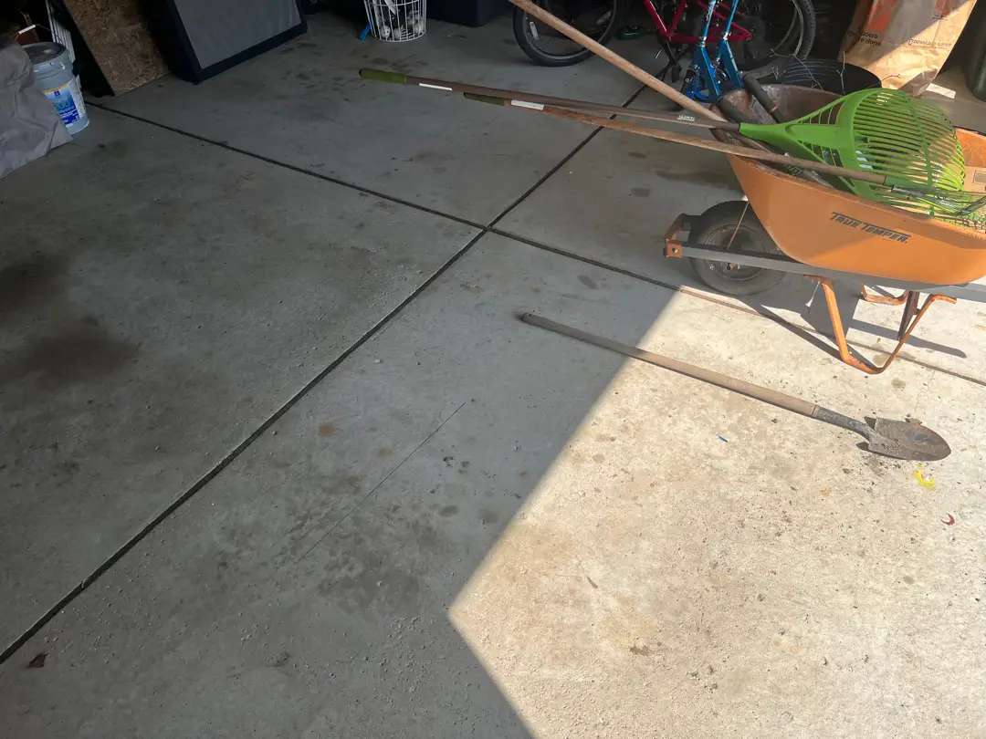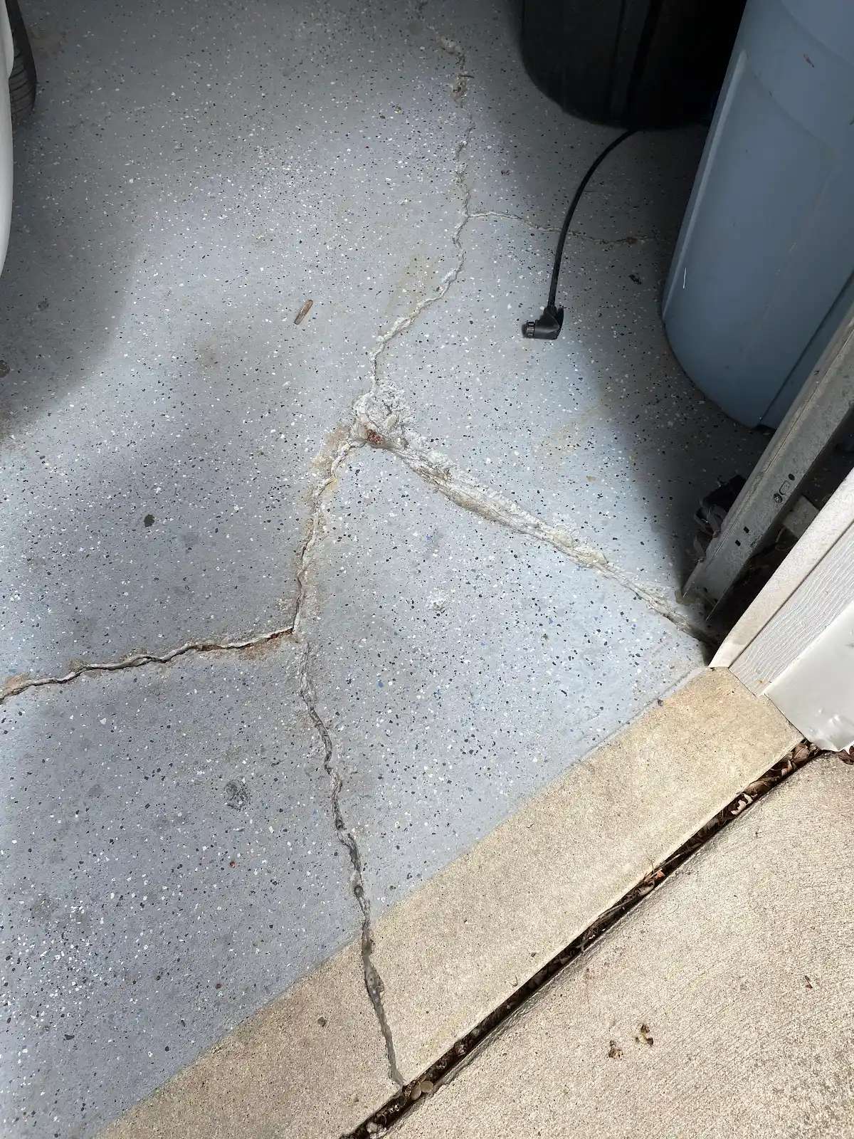 This garage floor presented exceptional structural and surface challenges. Multiple structural cracks traversed the slab, several extending across the full garage width. These weren’t hairline fissures but substantial cracks exceeding 1/8 inch in width, some approaching 1/4 inch at their widest points. The crack patterns suggested both settlement movement and thermal stress cycling, with jagged propagation indicating tension failure in the concrete matrix.