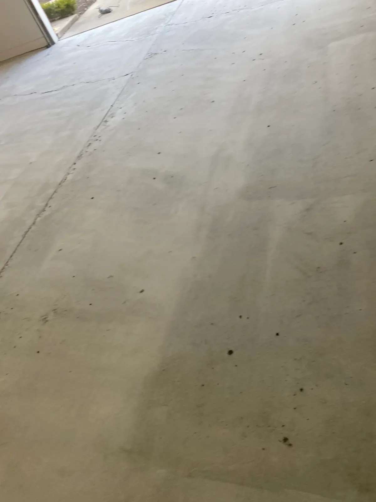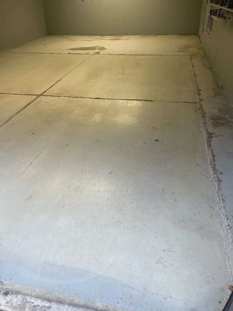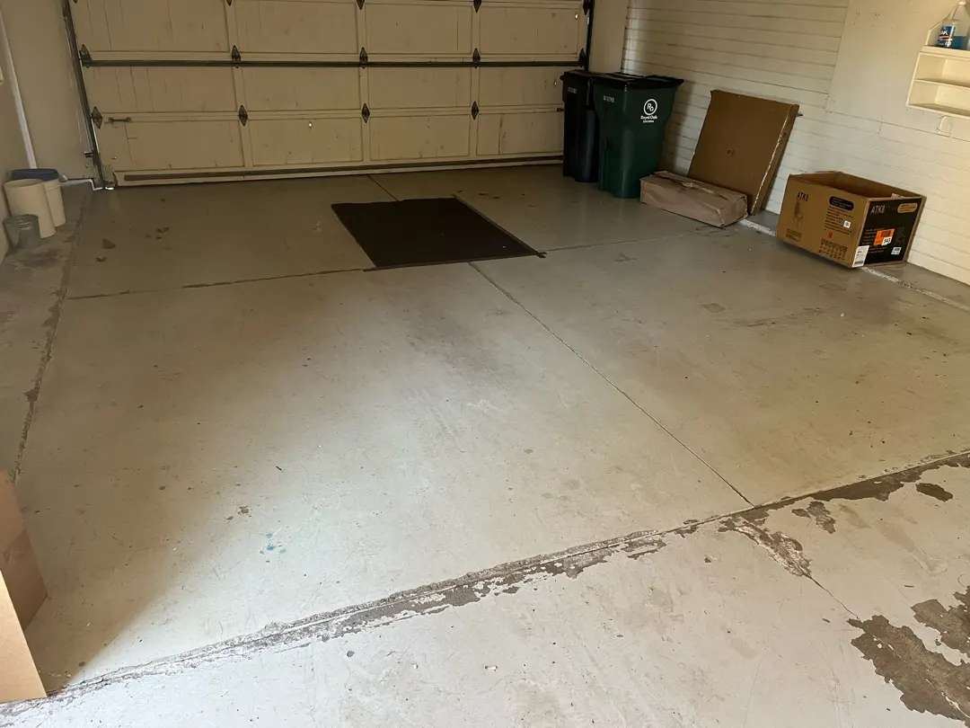 The concrete substrate represented a coating applicator’s ideal starting point—newly poured concrete that had properly cured but not yet accumulated the staining, cracking, or surface deterioration typical of garage floors in service. The slab exhibited uniform gray coloration across all 1,090 square feet, indicating consistent concrete mixing, placement, and finishing techniques during the original pour.