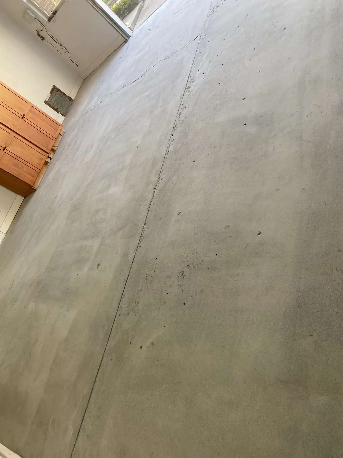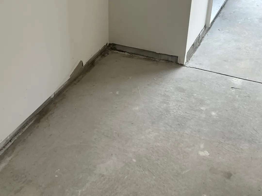 The concrete surface displayed the characteristic texture of properly finished new concrete—smooth enough for comfortable foot traffic but not over-troweled to the point of creating a dense, impermeable surface layer that could interfere with coating adhesion. The floor’s flatness and level characteristics met professional standards throughout all rooms, with no significant high spots, low areas, or drainage concerns requiring remediation.