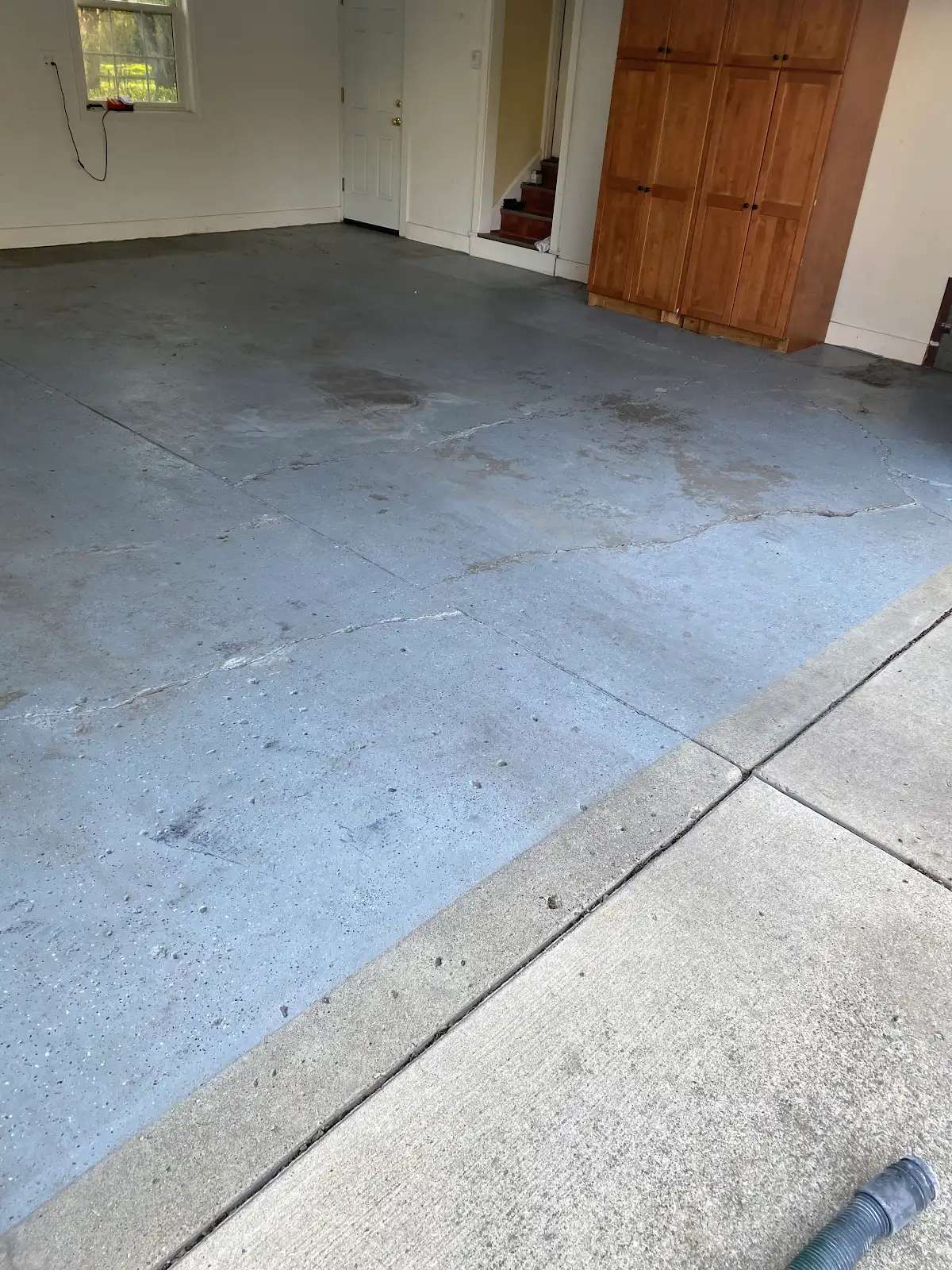 The new garage floor coating presents a clear contrast between the stained, deteriorated original concrete… and the professional appearance of the new coating. The Driftwood color palette creates a warm, inviting aesthetic that elevates the garage from a purely utilitarian space to a refined extension of the living areas of this home.