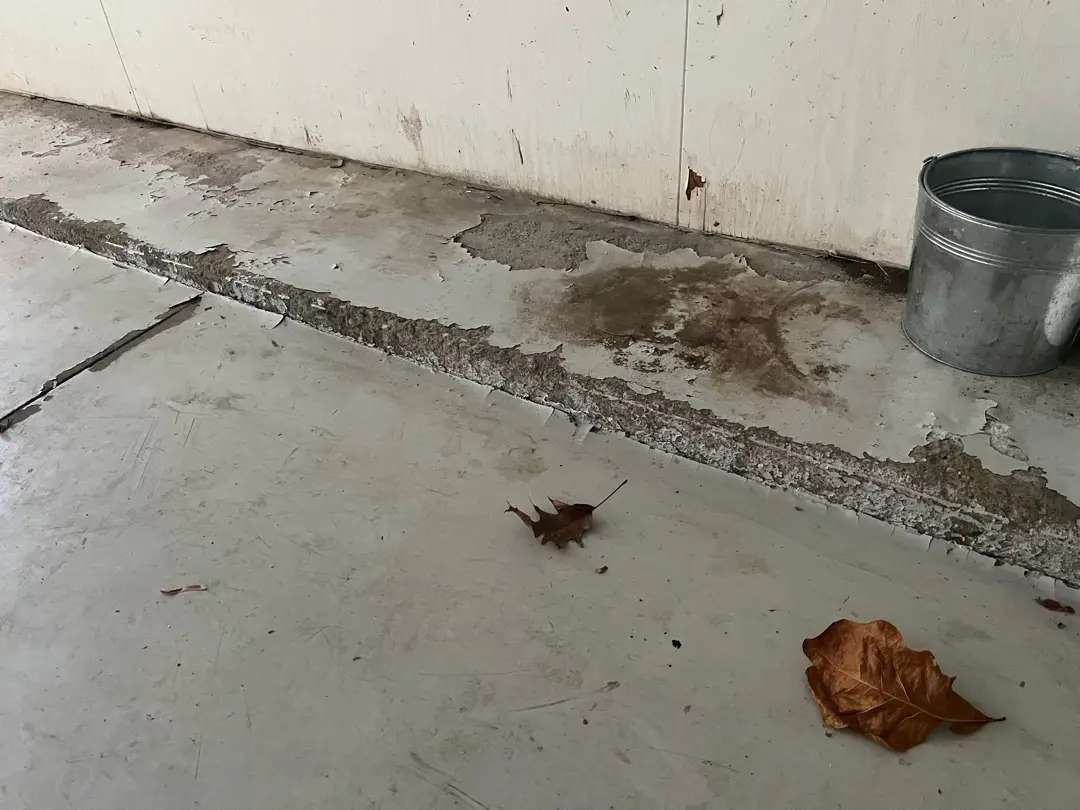In areas where the paint remained adhered, the coating showed severe surface wear, with high-traffic zones worn through to bare concrete. The inability of the paint to bond properly to the concrete had created a hydrophobic barrier that actually accelerated substrate deterioration beneath the coating by trapping moisture against the concrete surface.