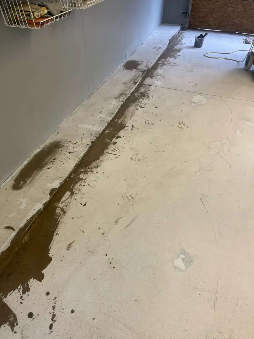Particular attention was paid to the wall-to-floor junction around the perimeter of the garage. This 59-linear-foot transition zone required detailed preparation to ensure proper adhesion for the vertical cove base application. Our team ground the lower wall surface and floor edges to create a continuous profile that would accept coating material across the 90-degree angle without weak spots or inadequate coverage.